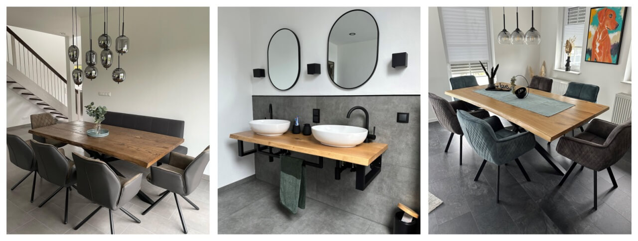 Ob Esstisch aus Massivholz, Schreibtisch nach Maß, Couchtisch mit Metallgestell oder Gastronomie-Tisch – bei EinzigarTisch wird jedes Möbelstück individuell gestaltet. Holzart, Oberflächenbehandlung, Farbe, Maße und Untergestell können frei gewählt werden. So entstehen einzigartige Designmöbel, die perfekt zum Raum und Stil passen.